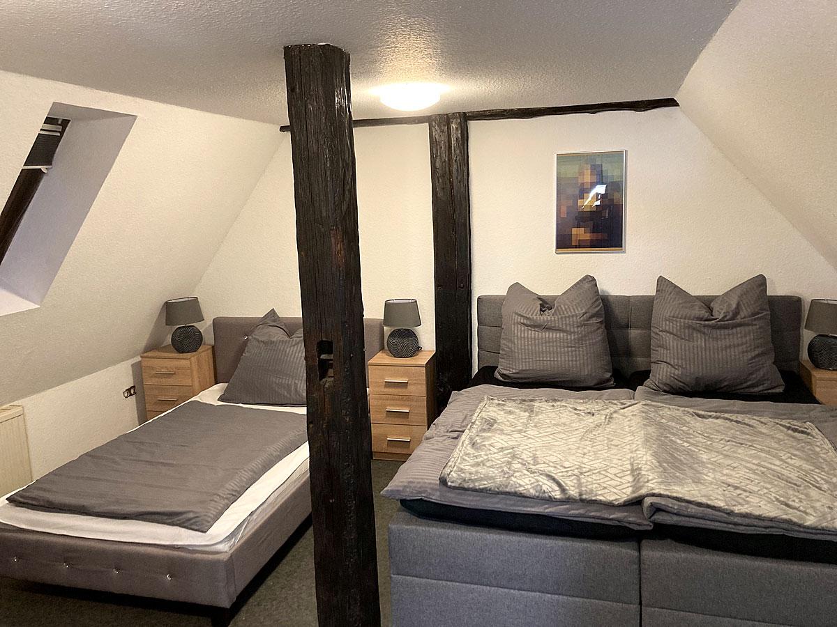 In den 2 großen Doppelbetten finden Sie bzw. Ihre Mitarbeiter erholsamen Schlaf nach einem ereignisreichen Arbeitstag. Zusätzlich stehen zwei Einzelbetten zur Verfügung, so dass insgesamt 6 Personen Platz finden. Damit die lästige Parkplatzsuche nach Feierabend entfällt, steht ein kostenloser Parkplatz direkt am Haus zur Verfügung.