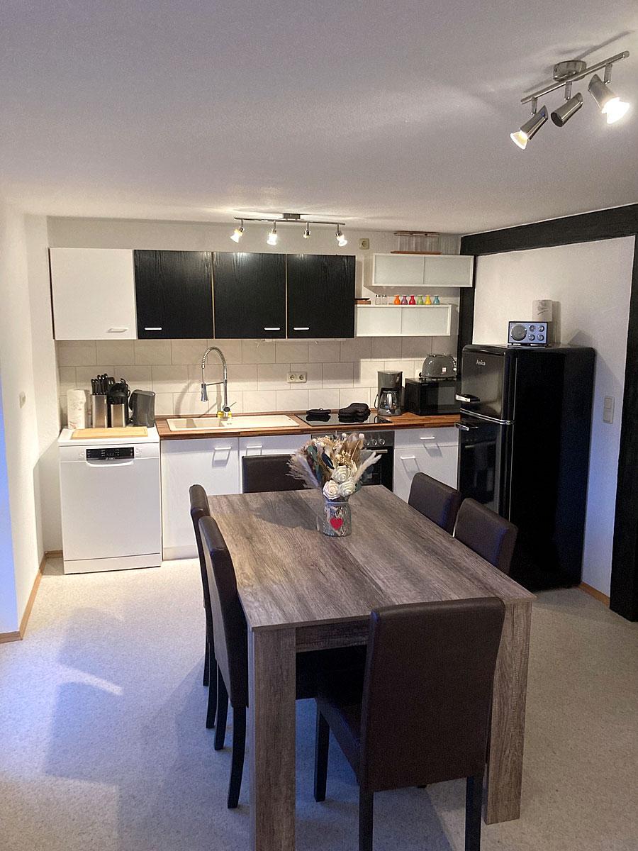 Die vollausgestatte Küche bietet alles, was Mann und Frau brauchen. Vom morgendlichen frischen Kaffe aus der Kaffemaschine bis zur Geschirrspühlmaschine, um sich abends nicht noch um den Abwasch kümmern zu müssen, finden Sie hier alles, was Geschäftsreisende für einen erfolgreichen Aufenthalt benötigen.